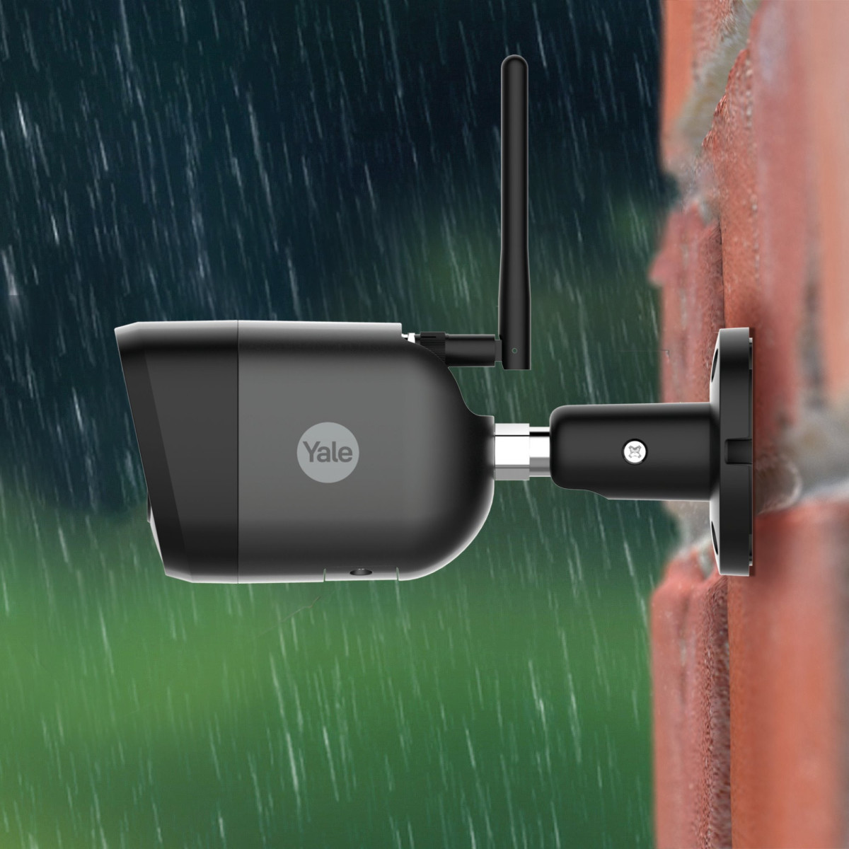 La caméra extérieure Wi-Fi peut être couplée à un système de vidéosurveillance connecté Yale.