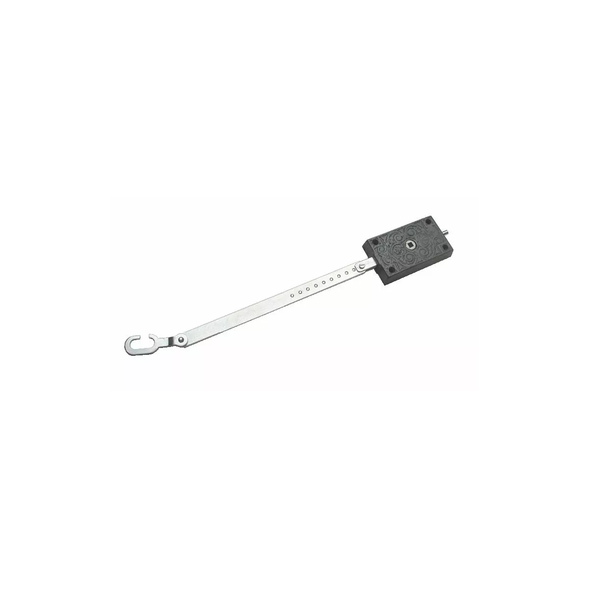 Composé d'un boitier en fonte peinte, d'une tringle et d'un crochet en acier zingué blanc, le boitier est résistant aux agressions extérieures.